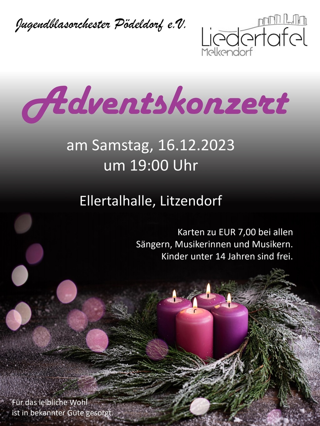 Am 3. Adventswochenende, Samstag 16. Dezember, ist ein gemeinsames Weihnachtskonzert mit dem Jugendblasorchester Pödeldorf geplant.